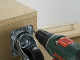 A continuación, atornille desde arriba la placa de cubierta (previamente perforada) al cuerpo usando el atornillador ACCU y tornillos de 4 x 35 mm. Como ya ha avellanado los orificios, introduzca las cabezas de los tornillos en la superficie de forma que queden ocultos al aplicar la masilla y la pintura. Tenga en cuenta además el consejo para atornillar dos piezas de madera recogido en el punto dos.