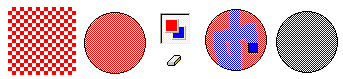 Ponéis el color rojo de primer plano y el color azul de 2 plano. seleccionáis la goma, y dejando pulsado el botón derecho del ratón y pasando la goma por el circulo rojo, veréis como en lugar de borrar cambias a color azul todo lo que haya en rojo.