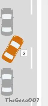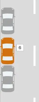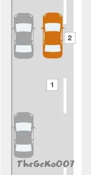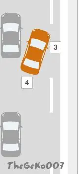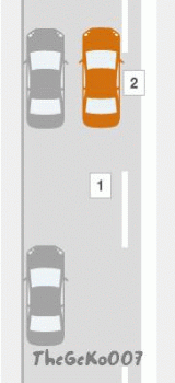 Para quienes no se orienten bien, sirve retroceder justo hasta ver el centro del morro del auto que tienes atras mirando por el retrovisor derecho, ha de estar cerca como en la imagen para servir esa referencia..