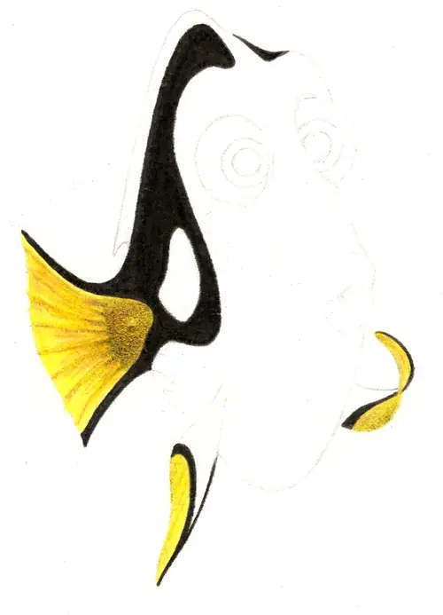 Como ven, empecé por las aletas, pintando todo de amarillo.