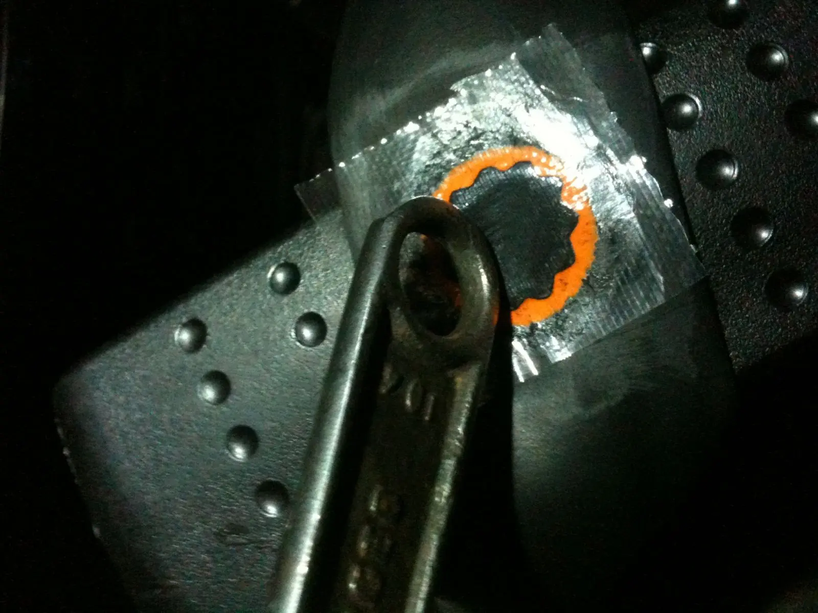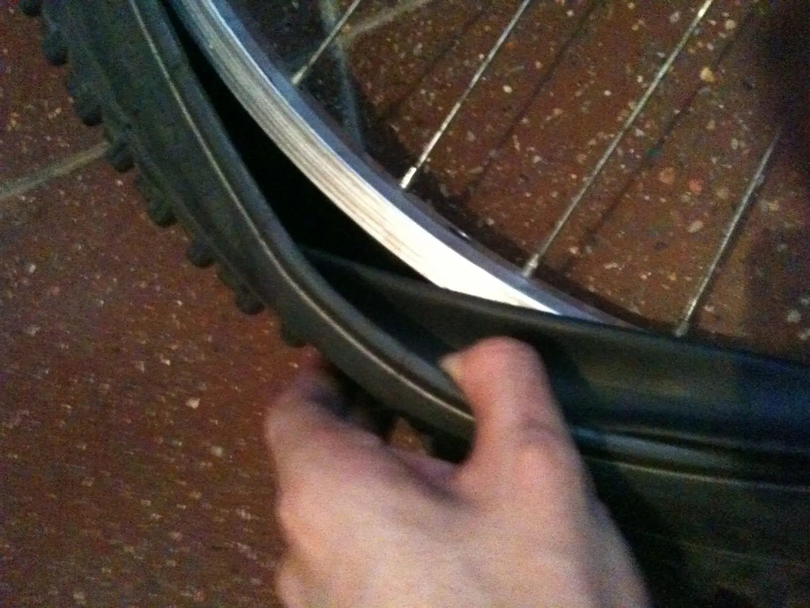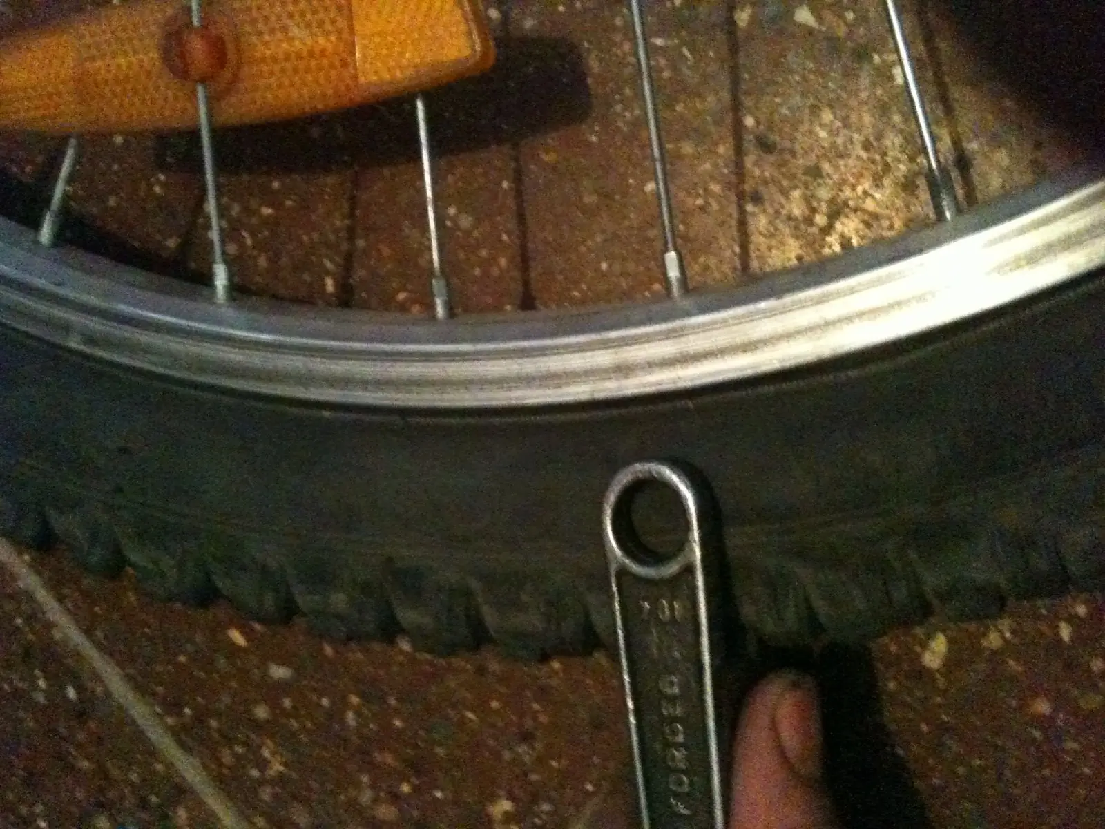 14-inflar mas o menos 10 psi y golpetear contra el suelo dando movimiento circulares esto se hace para acomodar la cámara vieja que sirve como protección y la cámara reparada esta fotos me costaron por que estaba solo)