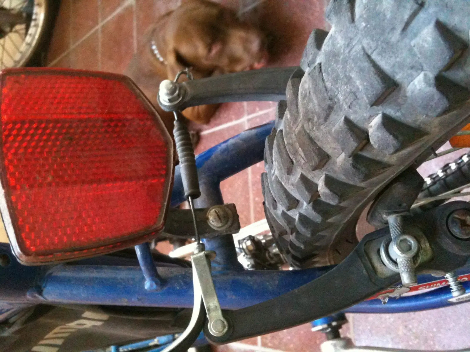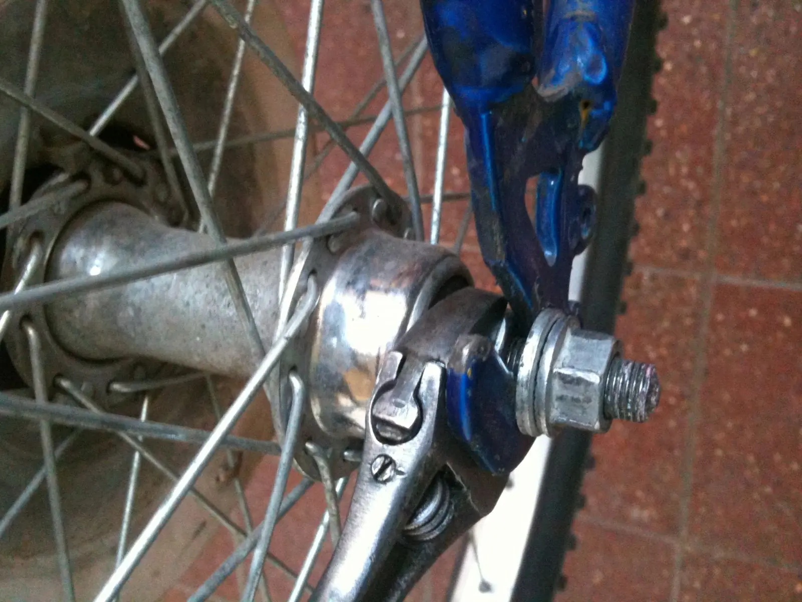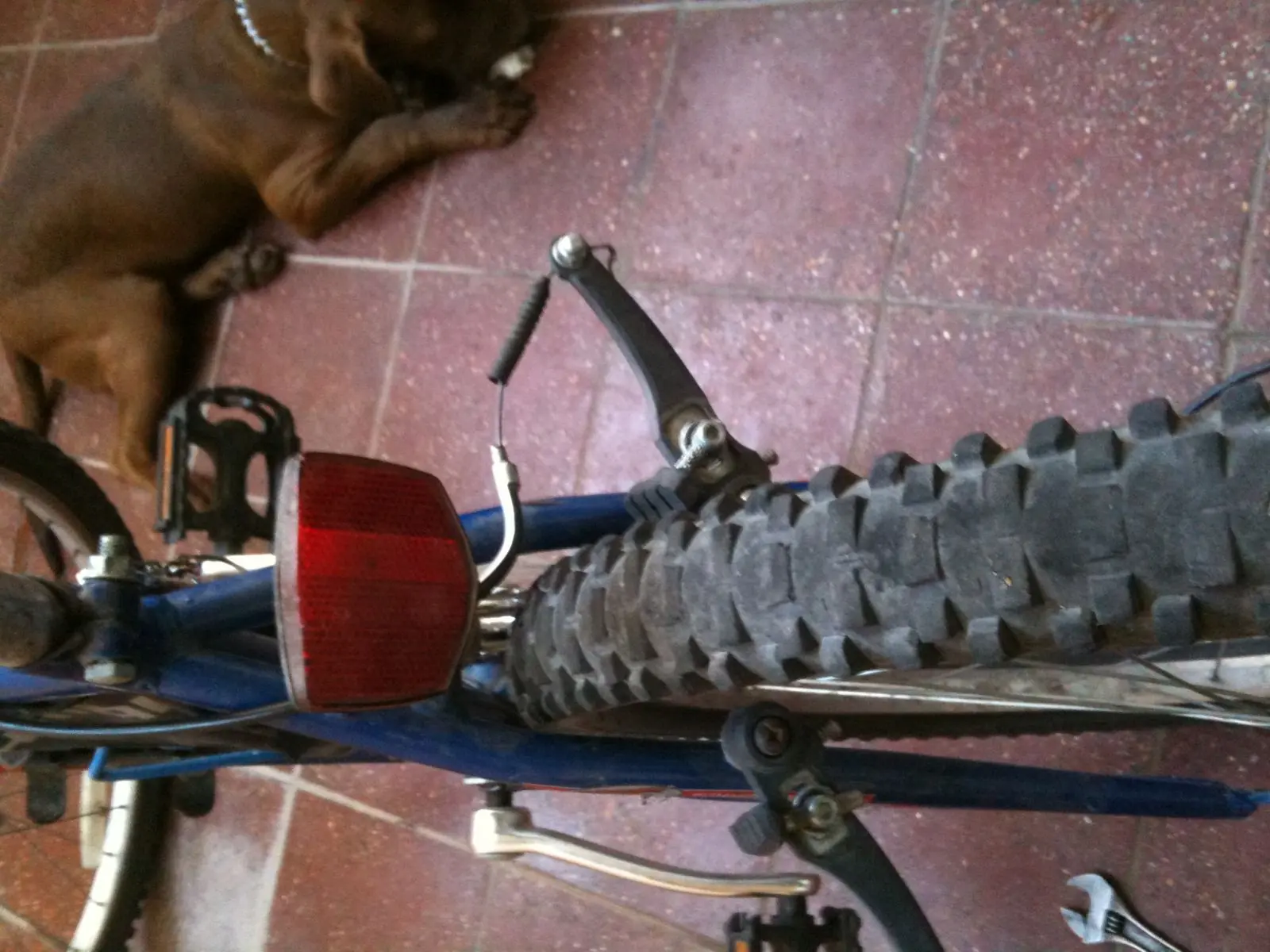 4-destrabamos el freno en este caso es un v-brake (hay balancín y a disco) pero este es el mas común