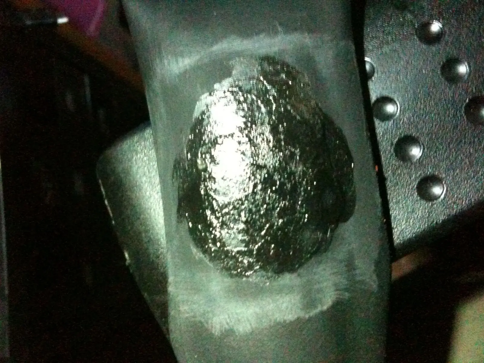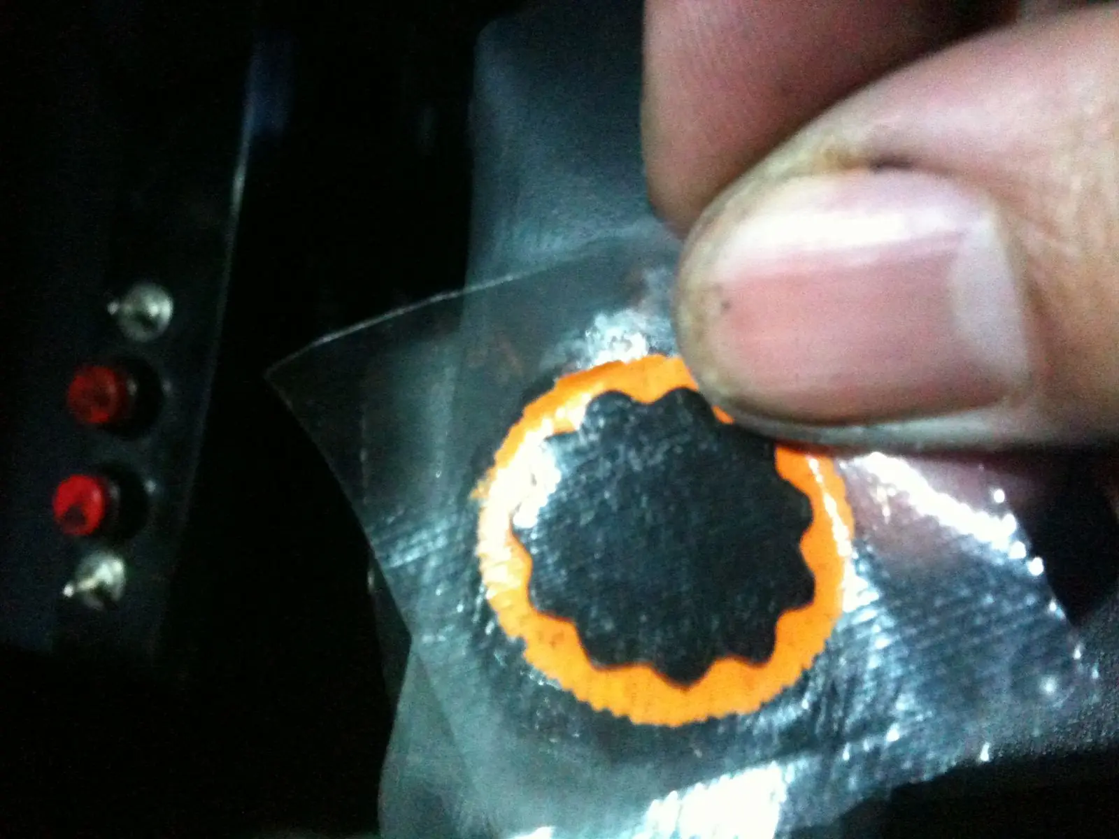 y lijar por que de seguro que se achico la parte lijada. sacamos el film brillante al parche