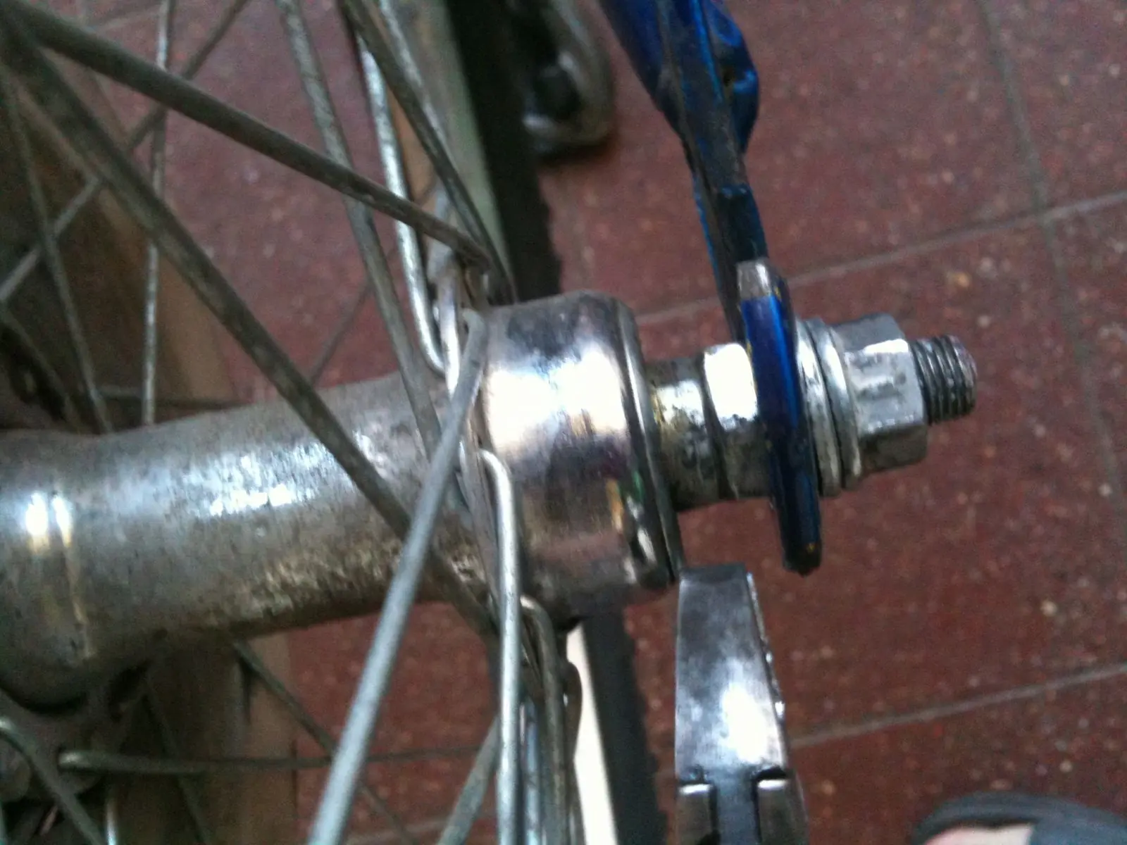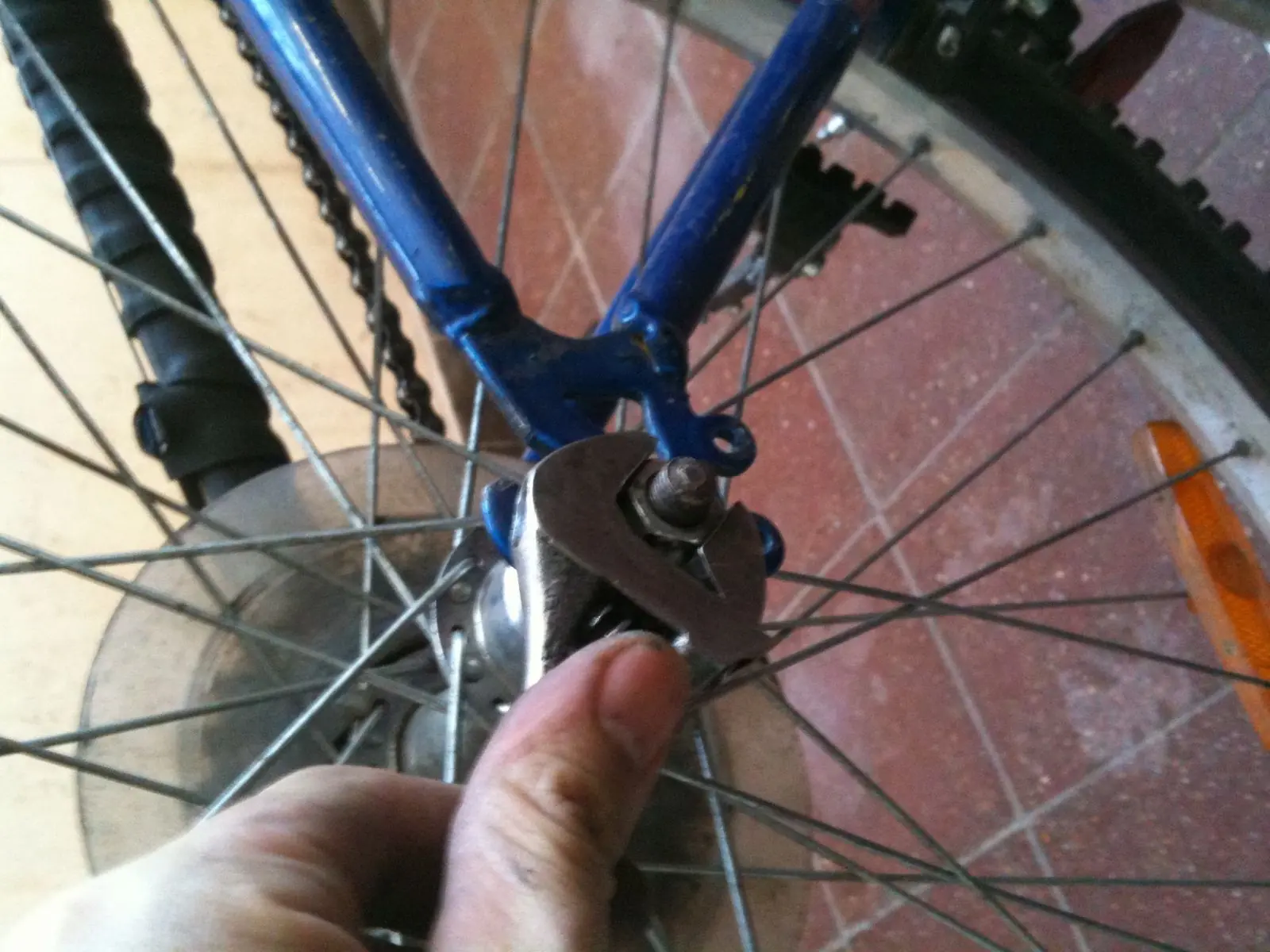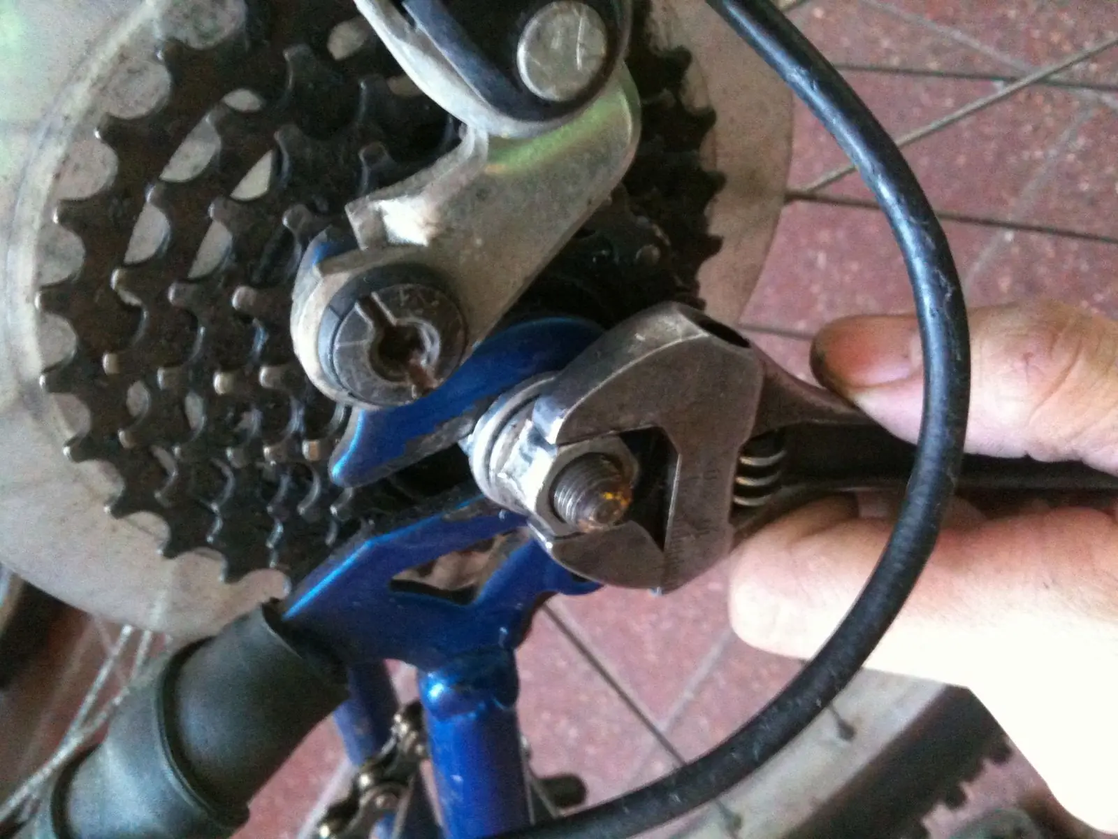 5-desajustamos la tuercas del eje trasero en este caso( existen las abre fácil pero esta bici es vieja y trae tuercas en los ejes)