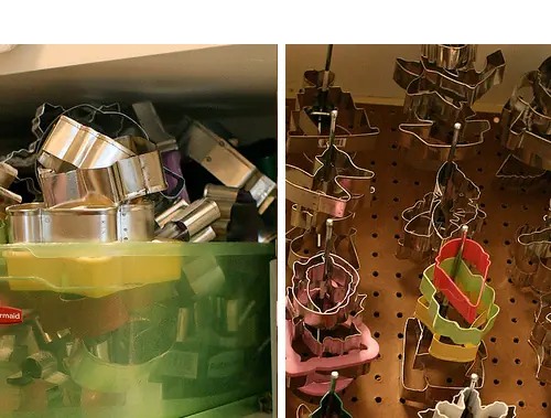 Use un tablero y la pared ganchos montados en su despensa para un Super Muro organizado cortador de galletas! Vea como Annie lo hizo aquí en Annie Come .