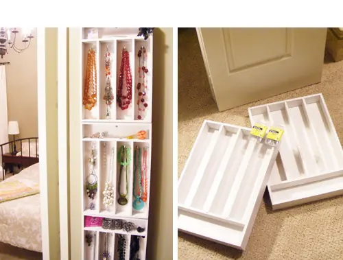 Para montaje en pared cuberteros y agregar una taza de gancho en cada compartimiento para el almacenamiento de las joyas brillantes. Recibe las instrucciones en el Mini Manor .