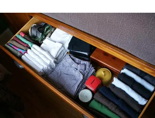 Evite los cajones de la cómoda desordenado por "presentar" la ropa de lado a lado en vez de apilar objetos encima de la otra. Ver el antes y el después en Apartment Therapy .