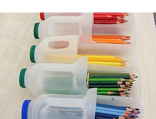 . Usar botellas de leche para el almacenamiento de un lápiz
