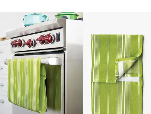 Coloque una tira de velcro para el paño de cocina, un bucle sobre la puerta del horno manejar y unir los extremos - ¡voila, un paño de cocina antideslizante!