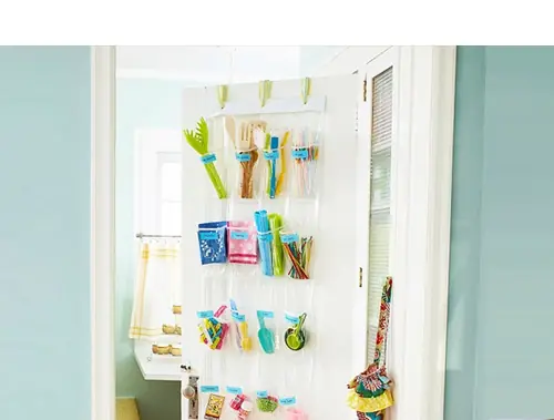 Cuelgue un organizador de zapatos en su despensa o en la puerta Kichen y llenarlo con utensilios de cocina y suministros que se utilizan todos los días.