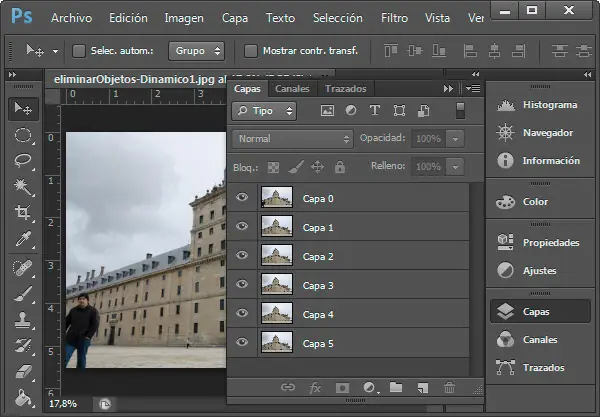 Una vez que tenemos las tomas es momento para ir a Photoshop y comenzar el trabajo de eliminación. Para ello, seguiremos los siguientes pasos.