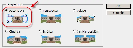 2. A continuación, alineamos las imágenes. Para ello, seleccionamos las dos capas (Seleccionar > Todas las capas) y hacemos clic en Edición > Alinear capas automáticamente..., eligiendo Proyección automática.