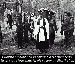 En una de sus salidas de combate del 21 de Abril de ese mismo año, Richthofen persigue a un Sopwith Camel pilotado por Wilfred May hasta territorio británico, May era un piloto novel con muy poca experiencia y en su afán de sacarse al implacable Barón Rojo de encima, comienza un torpe y errático vuelo a baja altura internándose en territorio británico, Manfred se negó a dejarlo escapar y siguió su errático vuelo hasta que una sola bala le atravesó el pecho. Durante mucho tiempo se penso que el disparo provino de las ametralladoras del piloto canadiense Arthur "Roy" Brown que estaba detrás de Richthofen yendo en ayuda de Wilfred May. Lo cierto es que estudios posteriores y el resultado de la autopsia revelo que el disparo ingreso en realidad por debajo del muslo, lo que anula toda posibilidad de que el disparo provenga de otro avión. Durante mucho tiempo se discutió quien había derribado al Barón Rojo, actualmente casi todos concuerdan en que es muy probable que el disparo que mato a Richthofen halla provenido de los tiradores antiaéreos australianos, específicamente Cedric Popkin o Robert Buie. Fue asi que Manfred von Richthofen con 80 victorias aéreas hasta ese entonces, se estrello en un campo cerca del camino que va de Corbie a Bray. Su cuerpo fue recuperado por las fuerzas aliadas del 3 Squadron AFC y se le da un funeral con todos los honores militares en Bertangles, cerca de Amiens, honores dignos del mas destacado enemigo. Luego su cuerpo fue repatriado a Wiesbaden.