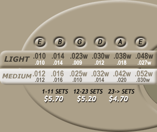 Un set liviano de guitarra acústica de 12 lleva: 1ª .010, 2ª .010, 3ª .013, 4ª .013, 5ª .017, 6ª .008, 7ª .026, 8ª .012, 9ª .036, 10ª .018, 11ª .46, 12ª .026. Para un set medium habría que sumarle dos puntos a cada valor. Todo depende de si te gusta que las cuerdas se sientan "blandas" o más "duras". Sería algo así como comprar un set de 6 cuerdas junto con otro set pero formado por 1ª, 2ª, 1ª, 2ª, 3ª y 4ª. Con respecto a la afinación, los encordados de 12 se afinan de a pares y en octavas, salvo los primeros dos pares. Por lo tanto, el primer par conformado por 1ª y 2ª se afina en Mi, y el segundo par formado por 3ª y 4ª en Si, como cualquier guitarra. A partir del próximo par las cuerdas se afinan en octavas. Esto quiere decir que se trata de las mismas notas, donde una es más aguda que la otra. Así la 5ª y la 6, que conformarían el tercer par, se afinan en Sol pero la cuerda más finita va a sonar más aguda que la otra. El próximo par (7ª y 8ª) se afina en Re, el próximo (9ª y 10ª) en La, y el último par, que sería el sexto (11ª y 12ª) se afina en Mi. Fijate vos que la afinación corresponde a la de una guitarra normal, sólo que octavada. Ah, y siempre la cuerda más finita va arriba de la más gruesa. O sea que vista desde arriba, siempre tocamos primero la cuerda más aguda del par.