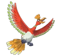 Ho-Oh es una criatura similar a un fénix, y puede ver el futuro. Vuela continuamente por los cielos con sus alas magnificas de siete colores. Su aparición significa el comienzo de una era de paz entre los humanos y los Pokémon. Él se revela a los entrenadores que son puros de corazón y se dice también que vive al pie del arco iris.