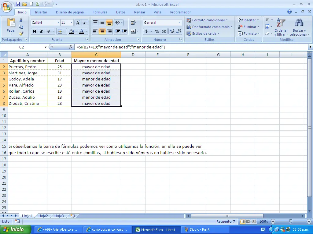 Otro ejemplo: Suponiendo que tienes una lista con edades de personas, y quieres que en otra columna te diga si esa persona es mayor de edad o menor de edad: