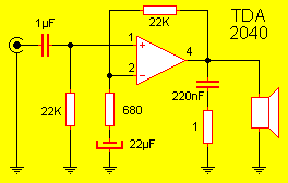 El TDA2040 es un circuito integrado muy común en equipos de audio domésticos por su excelente calidad de sonido y por su facilidad de empleo.