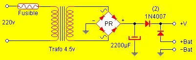 La alimentación puede ser cualquier tensión continua de entre 6 y 12 voltios, y no necesariamente estabilizada. Lo que es importante es que esté bien filtrada, para evitar ruidos de alterna en el audio.