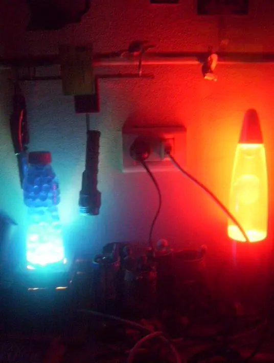 la foto se ve medio mal pero tira una luz zarpada de color y tiene un efecto re "flash" ah y en la base hay un lugar ahi que se filtra la luz del foco ...lo llene con un poco de masilla y listo
