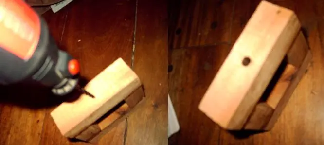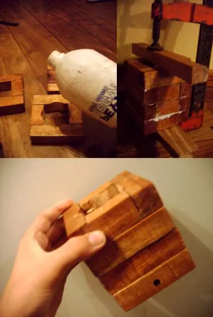 agarré el "cuadrado" que es el que iva a estar arriba de todo ,la botella y empecé a darle con la escofina hasta que la botella entrara perfecta y quede bien equilibrada.