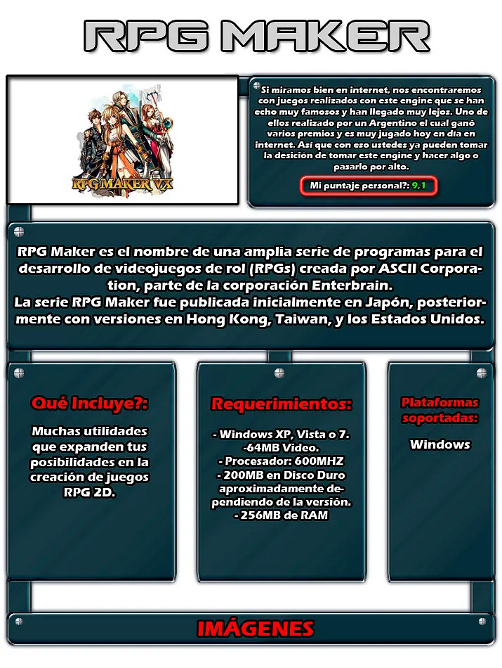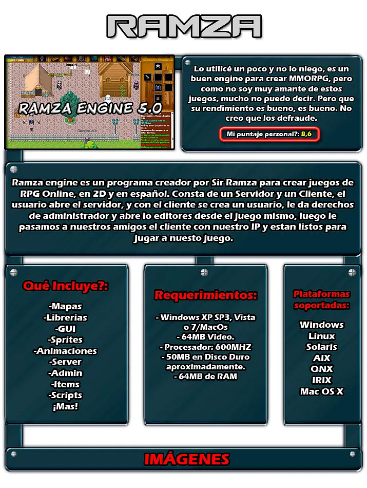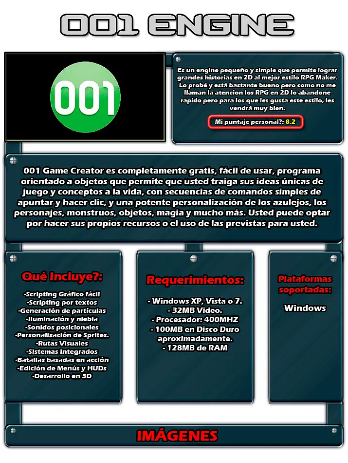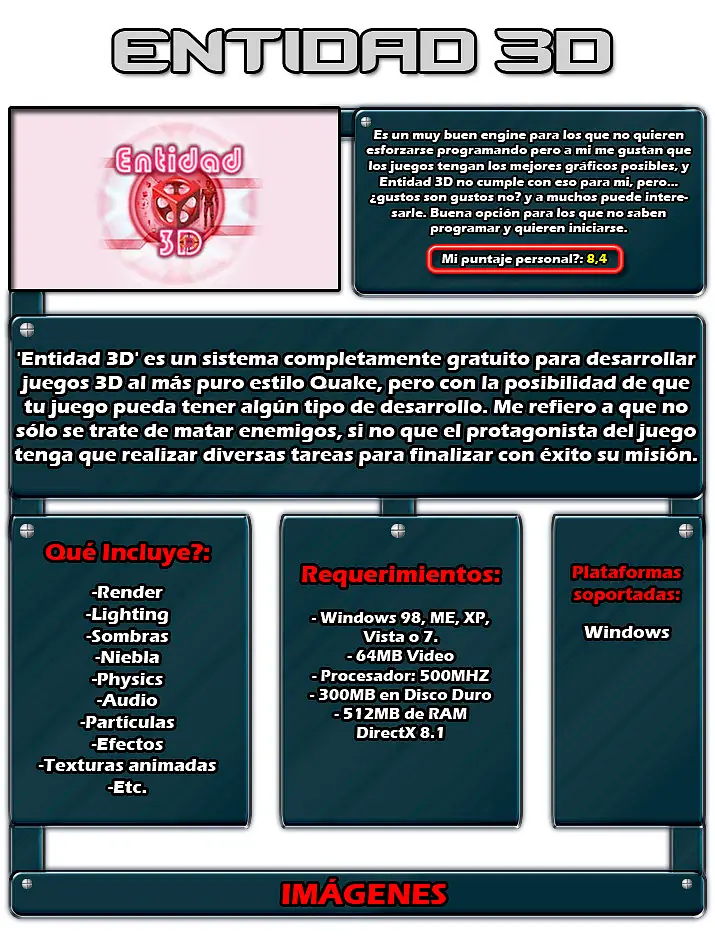 Bueno gente, después de mas de 12hs de dedicaión, he logrado terminar la PARTE 2. Hago este tema para dejarles aquí los engines con los cuales ustedes pueden hacer posibles los juegos de sus sueños y pasarlos a su propia PC. Solo deben disponer de tiempo y mas que nada, MUCHAS GANAS.