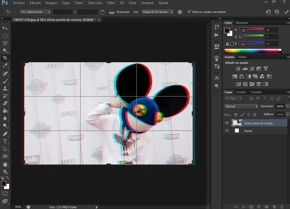 como pueden ver me quedo un costado solamente del color rojo o azul depende para que lado la quieran mover,se lo podemos sacar recortandolo con la siguiente herramienta:
