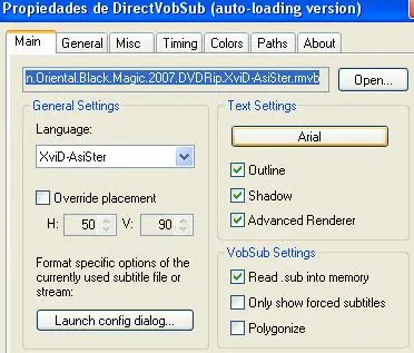 y en el mismo directorio y se abre el VobSub y se cargan los subtítulos.