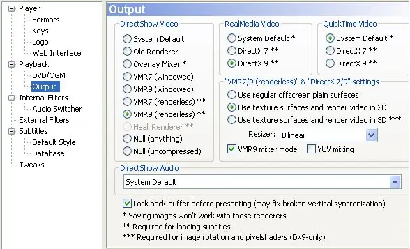 Dentro del programa, ir a View->Options...->Playback->Output y configurar así: