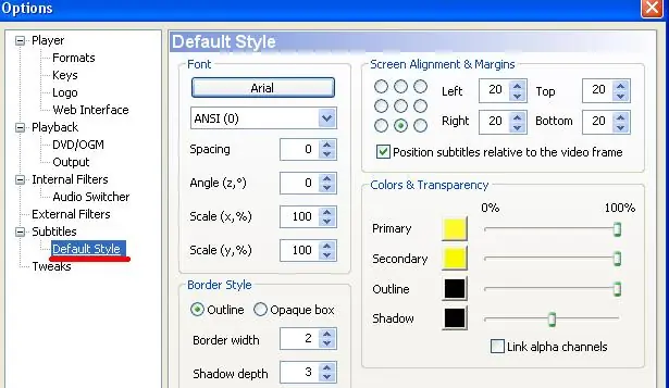 Abriendo el icono del VobSub en la barra de tareas se pueden configurar los subtítulos también: