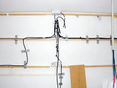 El maremagnum de cables del equipo, que iría oculto bajo el friso. En esta fase es vital identificar bien los cables, poniéndoles etiquetas con cinta adhesiva si hace falta.