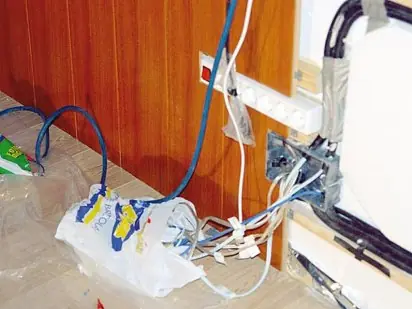 "Aquí están todos los cables que iban a la caja donde se tenían que enganchar, los teníamos con pegatinas para saber de qué era cada uno". El enchufe de luz y televisión, por recomendación paterna, los llevaron a la misma altura que los demás.
