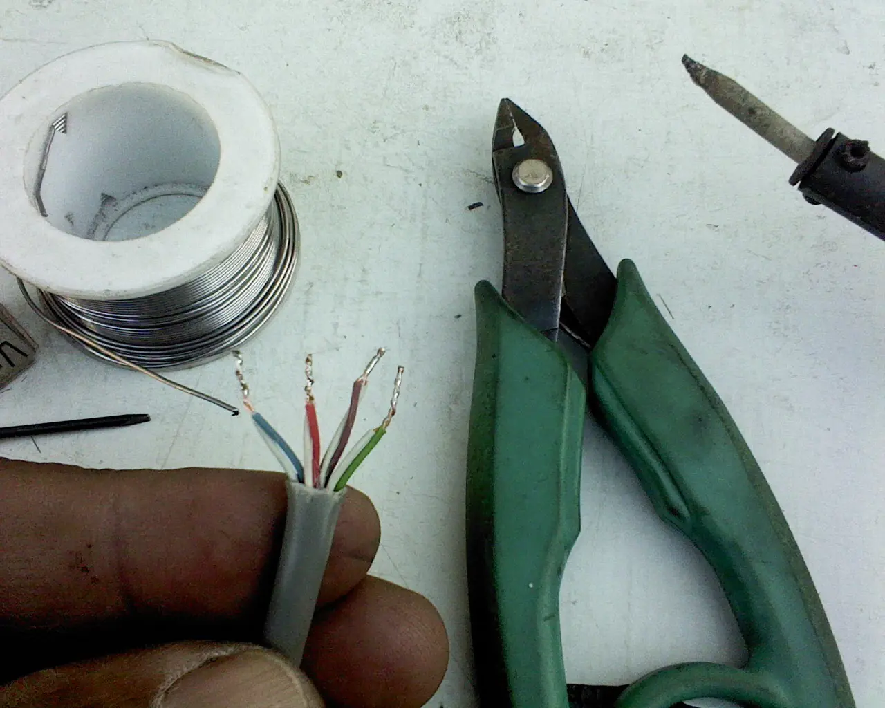 Retorcemos los cables pelados, estañamos la puntas y cortamos a longitud correcta.