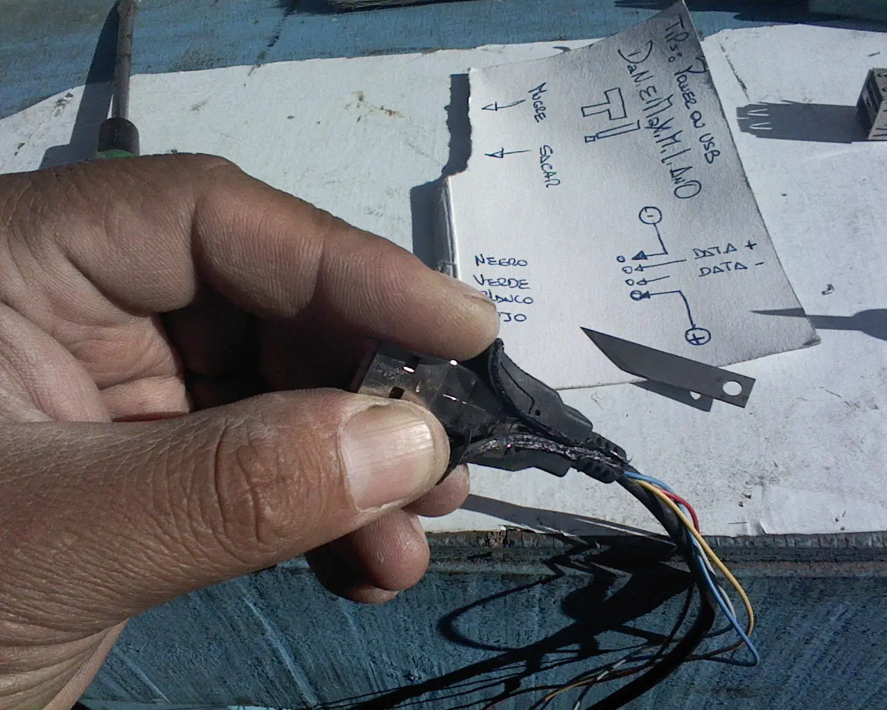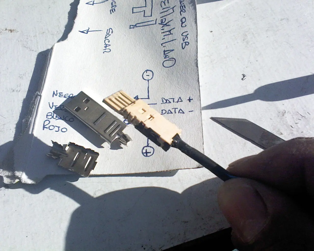 Cortamos con un cutter la protección plastica del cable USB.