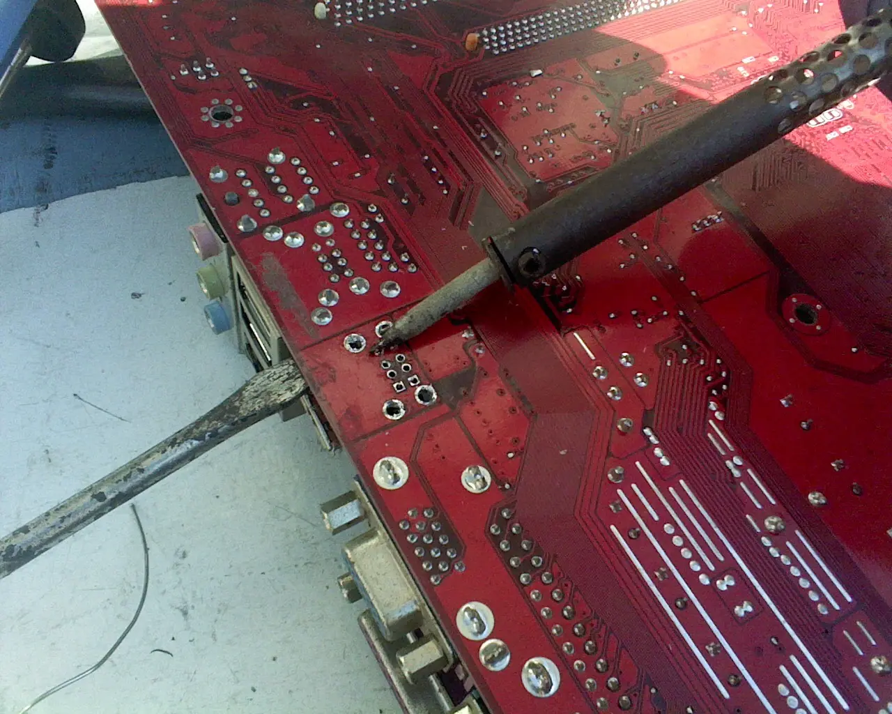 Mientras calentamos las 2 patitas juntas usamos un destornillador plano y hacemos minima palanca.