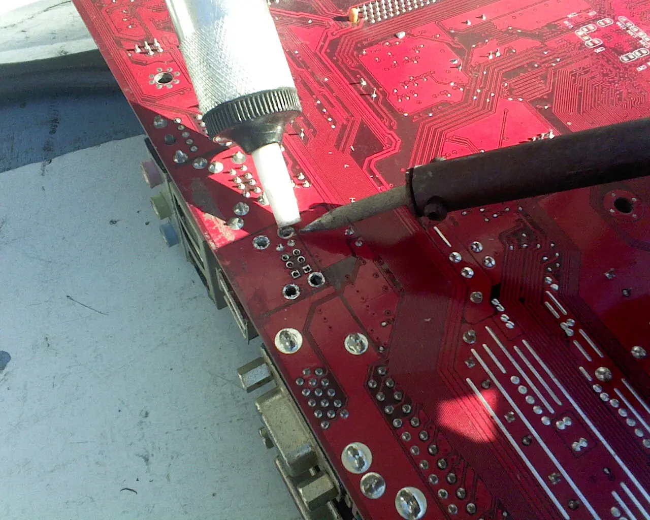 Calentamos bien la pieza, despues usamos el Desoldador.