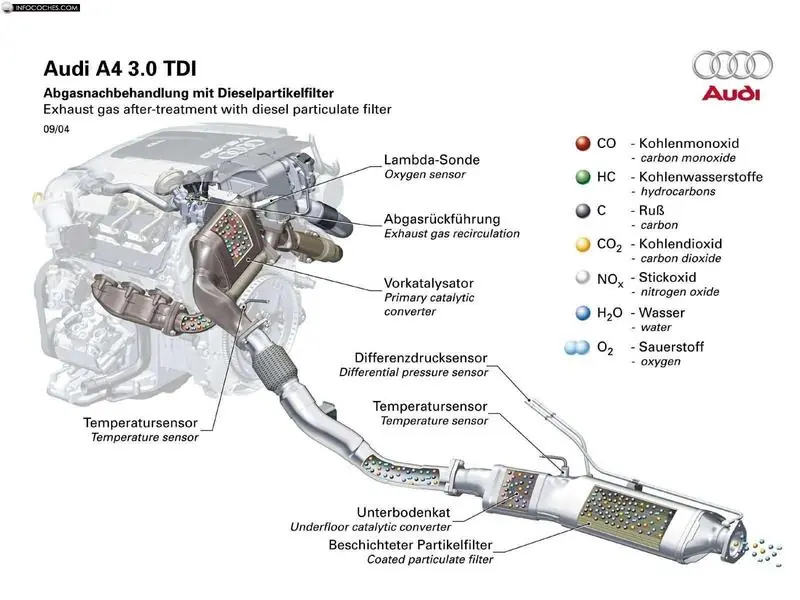 En los diésel actuales hay varios filtros de gasoil, con uno principal del tipo de cartucho de papel reemplazable y que suele combinarse con un dispositivo separador de agua, también conocido como "trampa de agua".