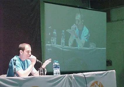 B: -No estoy confundido. Vos me estás provocando. Yo te conozco. Yo los conozco a todos. Vos sos contra mío desde Víctor Hugo. Y antes cuando eras un pendejo, de jovencito, te hice (sic) una nota solo como dos horas en el medio de Ezeiza y después te diste vuelta