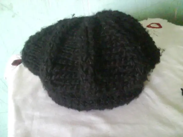 Y terminamos cerrando con un nudito la lana y escondiéndo la tirita que sobra entre la lana de la boina hermosa que acaban de terminar