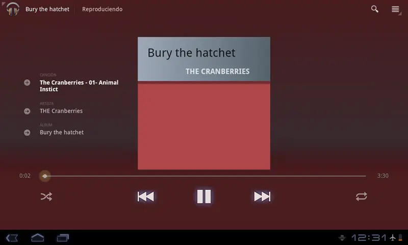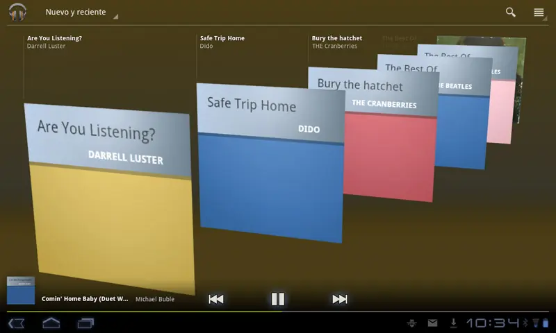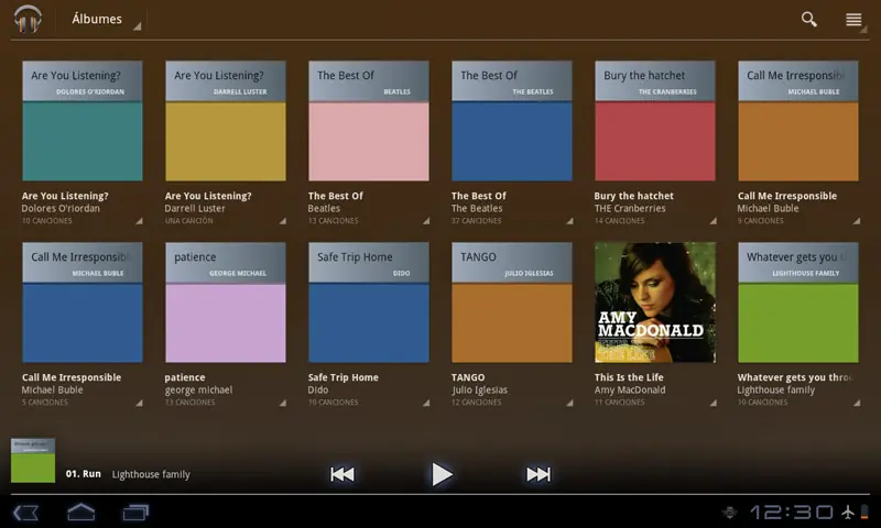 Reproductor de música. nada que objetar en este punto, quizás solo el que no dispongamos de un ecualizador para jugar entre agudos y bass. La clave está en tener a mano unos buenos auriculares, preferiblemente de casco teniendo en cuenta las circunstancias en las que podemos utilizar el tablet (no precisamente mientras andamos por calle, ¿o Sí? La música suena realmente bien.