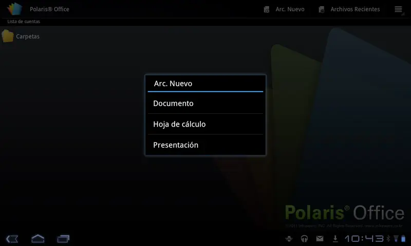 ¿Cuales son las apps pre-instaladas en el Optimus Pad? No encontraremos precisamente una gran variedad de ellas, sino que lo único relevante es la suite ofimática Polaris Office, en su versión para no solo leer documentos, sino para crear y editar también archivos word, excel y de presentaciones: el teclado QWERTY virtual apaisado resulta cómodo, es amplio, y disfruta de una respuesta eficaz al tacto.
