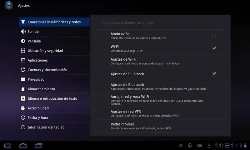 -. En conexiones inalámbricas y redes, anclaje red y Zona Wi-Fi el usuario podrá aprovechar la capacidad 3G del Tablet para compartirla con otro dispositivo o dispositivos.