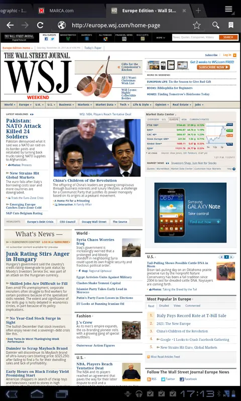 Con el dispositivo en formato vertical, podríamos considerar que es una visualización más apropiada para esas páginas ricas en contenido y gran multitud de entradas y titulares: el diario Marca y el Wall Street Journal son un ejemplo en el que poner en vertical el Optimus Pad favorece un vistazo general más rápido de lo que hay de nuevo, y así detectar más rápidamente lo que queremos leer.