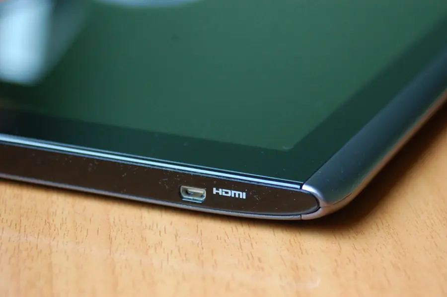 -puerto HDMI: con un cable lo suficientemente largo (al menos 3 metros), el usuario del Iconia Tab A500 puede disfrutar de los servicios en red y juegos directamente en la pantalla de TV.