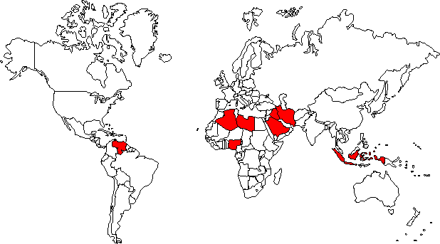 Si creiste que es un mapa de los paises en guerra o con conflictos con eeuu, te equivocas. Es un mapa de la OPEP... el problema es que "casualmente coincide" que eeuu invade o tiene problemas con todos los paises de la OPEP.