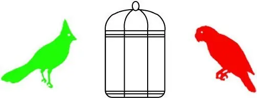 Mirar fijamente a los ojos del loro rojo mientras cuentas lentamente hasta 20, inmediatamente después mirar a un punto en la jaula vacía. La imagen débil y fantasmal de un pájaro azul-verde deben aparecer en la jaula. Intente lo mismo con el cardenal verde, y un pájaro color magenta débil debería aparecer.
