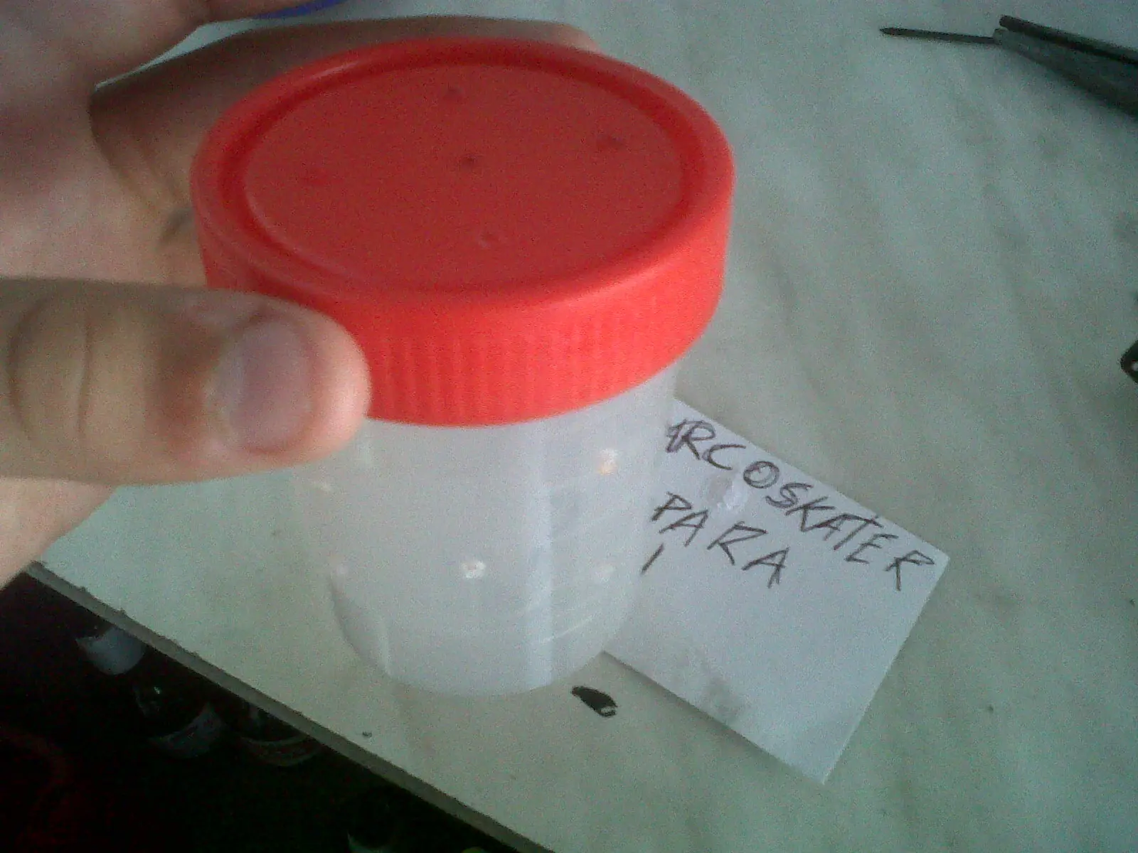 1) Recipiente plástico en este caso use uno de los de la pruebas de analices de orina que tenia viejo puede ser cualquier embaste plástico