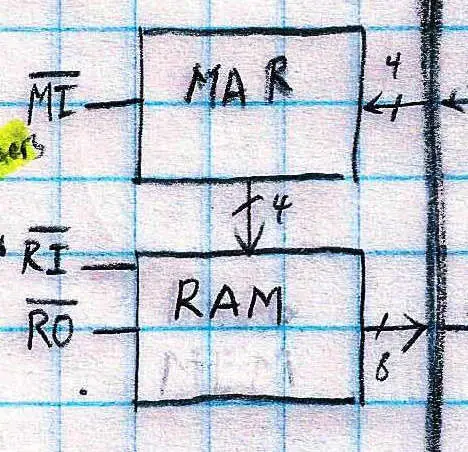 La memoria del programa de su computadora va a almacenar las instrucciones a ejecutar. También actuará como RAM que puede almacenar valores durante el funcionamiento del equipo. La memoria de programa consta de tres partes principales: la memoria, la dirección de memoria de registro (MAR) y el multiplexor. La memoria es un chip que tiene 16 bytes de almacenamiento. Hay una dirección de cuatro bits que se introducen en la memoria que le dice qué bytes debe leer o escribir. El MAR almacena la dirección actual para el byte que se lee o se escribe de la memoria. Se constantemente de alimentación en el chip de memoria a menos que el equipo está en su estado de programación. Un multiplexor le permite elegir entre dos entradas y una salida de la señal de entrada. El multiplexor utilizado en mi ordenador le permite seleccionar entre dos entradas de cuatro bits (el MAR y la introducción manual). Cuando el equipo está en su estado la programación de la dirección manual se introduce en la memoria y le permite a los bytes del programa en la memoria de los ordenadores en la dirección que usted defina.
