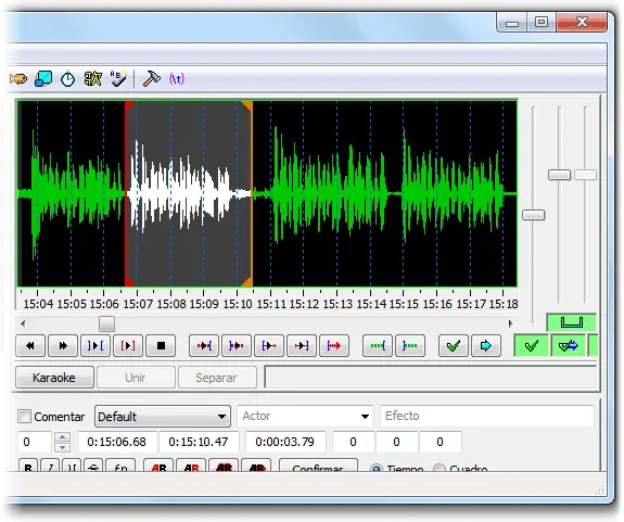 En las barras de desplazamiento de la derecha se puede ajustar el ancho y alto de estos gráficos, mientras que debajo tenemos varios controles de reproducción (reproducir audio seleccionado, reproducir primeros o últimos segundos, reproducir seleccionado y continuar, etc...), muy útiles para escuchar sólo la parte seleccionada y posteriormente, irla subtitulando.[/quote]