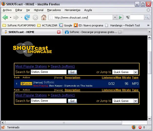 En definitiva, si quieres que algún amigo se conecta a tu radio, sólo tienes que pasarle el enlace relacionado con la búsqueda que acabas de ejecutar (Ej: http://www.shoutcast.com/directory/?s=softonic) y pulsar el botón "Tune In!" para conectar.