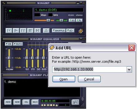 En este caso puedes hacer una prueba real. Instala el reproductor Winamp en el otro ordenador, ejecútalo y pulsa Ctrl+L. En la siguiente ventana introduce la dirección IP del ordenador donde has instalado la radio acompañado del puerto de emisión, el 8000 (Ej.: http://192.168.1.33:8000). Si todo ha ido bien, podrás conectar con tu radio y escuchar tu emisión en curso.
